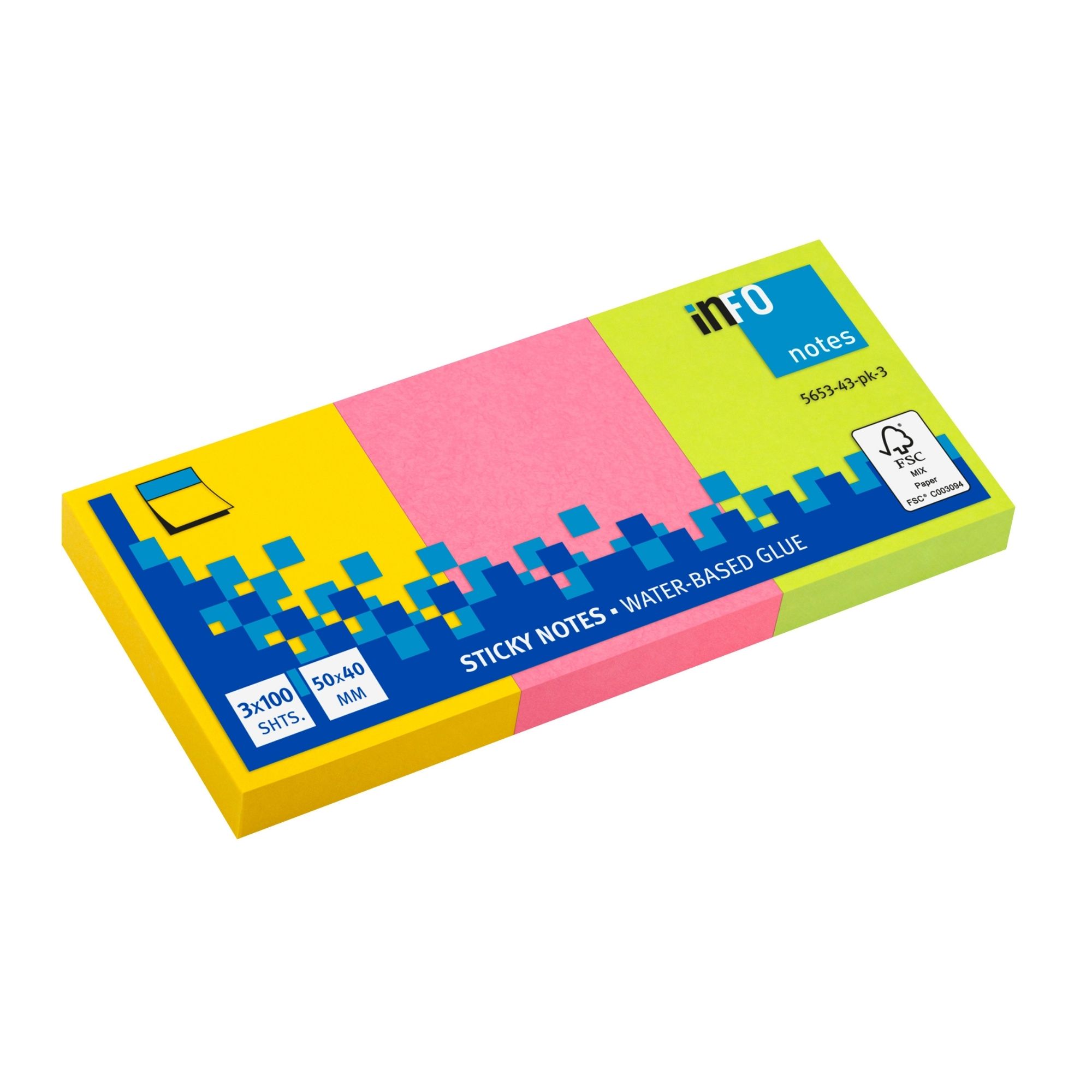 Info Notes 3 x 50 x 40 mm Parlak Renk 100 Yaprak Not Kağıdı 9565343